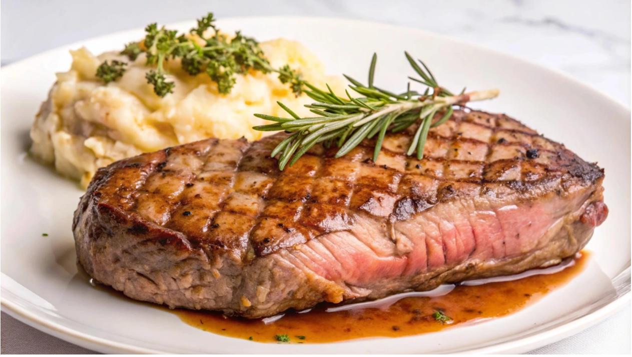 Найкращий спосіб приготування цього стейка — на грилі, проте навіть на сковорідці-гриль він виходить соковитим, ніжним і ароматним. Подавати його можна з відвареною картоплею або овочами-гриль, доповнюючи червоними насиченими винами.